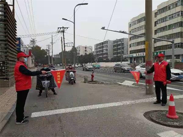 在規(guī)定的上崗時(shí)間,志愿者身穿紅馬甲、手持小紅旗,分別站在交通崗的四個(gè)出口方向值崗。時(shí)值路口人流、車(chē)流密集高峰期,同志們精神飽滿的揮舞著文明交通勸導(dǎo)旗,對(duì)橫穿馬路、闖紅燈等不文明行為積極制止勸導(dǎo),為路況不熟悉的行人提供幫助,倡導(dǎo)大家共同關(guān)注交通安全,增強(qiáng)交通安全意識(shí)、法治意識(shí)和文明意識(shí)。