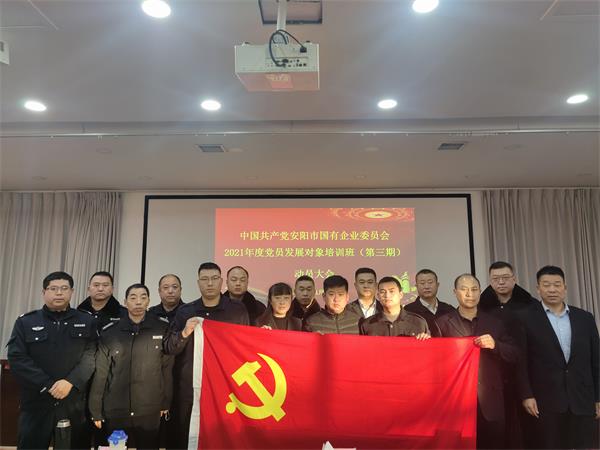 為嚴(yán)格黨員發(fā)展的政治標(biāo)準(zhǔn),全面加強(qiáng)發(fā)展對(duì)象的教育培養(yǎng),進(jìn)一步提升企業(yè)黨建質(zhì)量,落實(shí)《中國(guó)共產(chǎn)黨發(fā)展黨員工作細(xì)則》有關(guān)要求,11月30日至12月2日,中共安陽(yáng)市國(guó)有企業(yè)委員會(huì)舉辦2021年度黨員發(fā)展對(duì)象培訓(xùn)班(第三期),公司組織15名黨員發(fā)展對(duì)象參加了培訓(xùn)。11月26日上午,公司黨委副書記張錫軍主持召開了黨員發(fā)展對(duì)象集中談話會(huì),會(huì)議要求此次參加培訓(xùn)人員端正入黨動(dòng)機(jī)、嚴(yán)格遵守紀(jì)律、注重自身安全、樹立良好形象,充分發(fā)揮黨員先鋒模范作用,立足崗位多做貢獻(xiàn)。