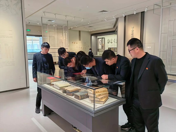 在“中國文字博物館”二期“徽文館”,黨員干部們依次參觀了“字書瓊林”“說文解字”“詞典類”等專題展區(qū),詳細了解了民俗文化中所蘊涵的漢字文化、古文字從古至今的研究成果,從歷代書法名家的名作中感悟漢字書法藝術(shù)的菁華。