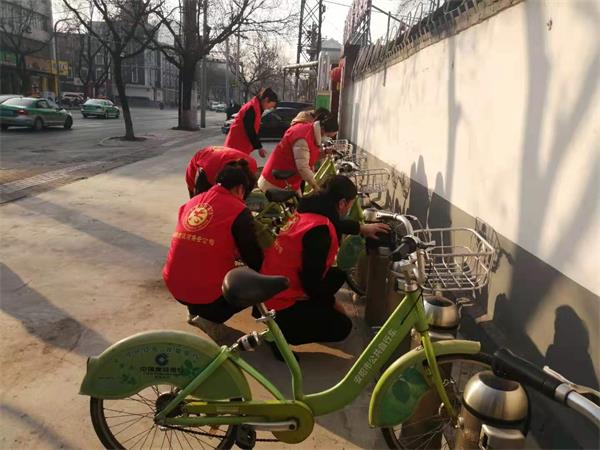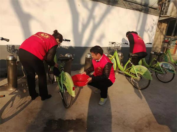 活動現(xiàn)場,大家絲毫不受寒冷天氣的影響,熱情積極,不怕臟、不怕苦、不怕累,發(fā)揮黨員的優(yōu)良作風(fēng),有的用抹布擦拭路邊公共自行車,有的鏟除小區(qū)樓道口的“牛皮癬”小廣告,有的用掃帚清掃院內(nèi)的垃圾,在大家的共同努力下,公共自行車和小區(qū)的環(huán)境變得干凈、整潔,受到了過往群眾的一致好評。