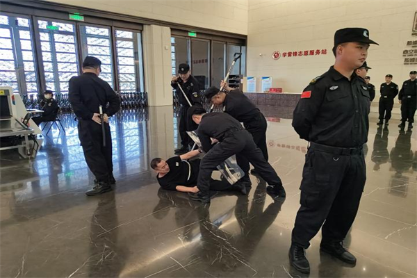 在防暴恐演練中,面對(duì)“不明人員”攜帶可疑物品強(qiáng)行闖入的模擬場(chǎng)景,現(xiàn)場(chǎng)安保人員第一時(shí)間上報(bào),應(yīng)急小組攜防暴盾、防暴叉3分鐘內(nèi)完成現(xiàn)場(chǎng)合圍控制,同步實(shí)現(xiàn)游客安全疏散與監(jiān)控錄像留存,全程處置規(guī)范高效。在防踩踏演練中,針對(duì)臨展廳游客聚集推擠風(fēng)險(xiǎn),應(yīng)急小組迅速啟動(dòng)疏散預(yù)案,4分20秒內(nèi)完成50名“模擬游客”的有序撤離,有效檢驗(yàn)了疏散流程的可行性。