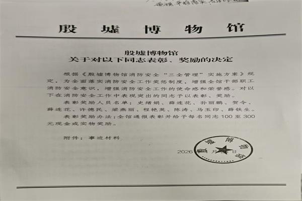 2026年2月12日,殷墟博物館召開2026年春節(jié)安全工作部署會(huì),全面安排部署春節(jié)期間景區(qū)安全保障工作。特保大隊(duì)大隊(duì)長(zhǎng)牛曉波受邀參會(huì)。