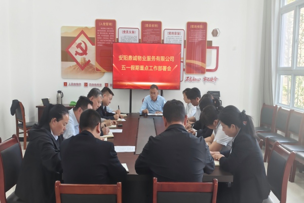為扎實(shí)做好“五一”假期物業(yè)服務(wù)管理各項(xiàng)工作,4月30日,鼎誠(chéng)公司組織召開(kāi)“五一”節(jié)前服務(wù)保障工作部署會(huì)。公司班子成員及各項(xiàng)目負(fù)責(zé)人參加會(huì)議。